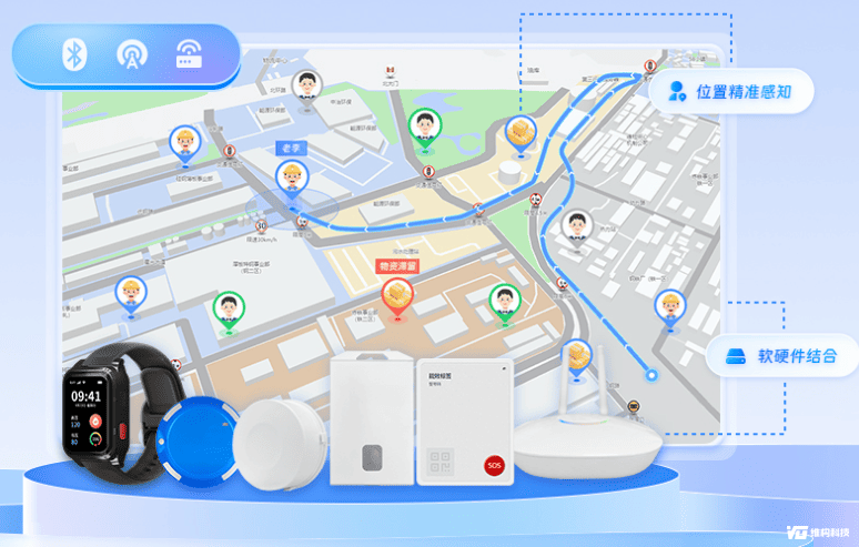 打造蓝牙、UWBRTK、卫星多源融合定位中枢,Lora+蓝牙定位、北斗+蓝牙室内外定位、beacon室内定位、蓝牙+RTK卫星定位、uwb+蓝牙融合定位多种定位方案,智能匹配不同场景需求:室内核心区域采用UWB技术实现±50cm厘米级定位,普通区域通过蓝牙定位将误差控制在2-3米,室外场景融合GPS/北斗卫星定位实现广覆盖。创新融入指南针纠偏算法与抗干扰技术,在金属密集的工业车间、多遮挡的交通枢纽等复杂环境中,仍能保持定位数据稳定,解决传统定位技术"室内漂移、室外盲区"的痛点。通信层面智能选择LoRa/4G最优路径,蓝牙信标使用寿命可达5年,LoRa基站可视通讯距离达15公里,兼顾低功耗与广覆盖需求。
