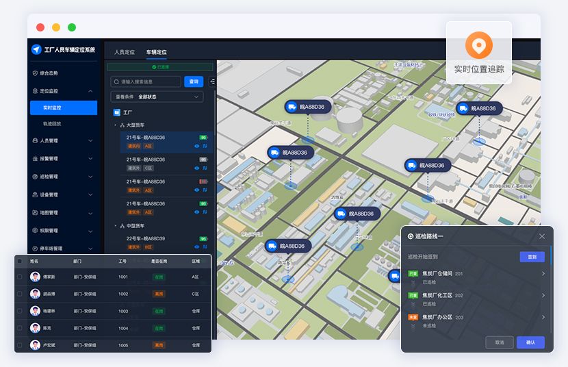 可实时查看人员所在位置,是否在岗在位。确保巡检的人员在正确的时间、地点,按照规划的路线进行巡检