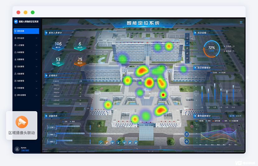 (2)安防联动与应急指挥:与区域内的摄像头联动,突发事件快速定位与可视化处置。