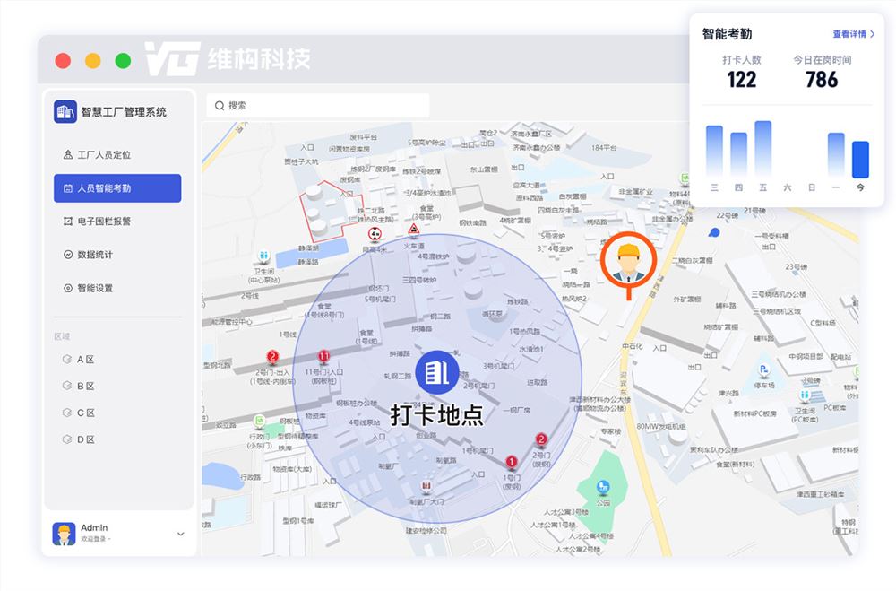 ·智能考勤与工时统计:自动记录人员出入区域时间、工作时长,生成考勤与绩效报表,减少人工统计负担,杜绝代打卡等问题。