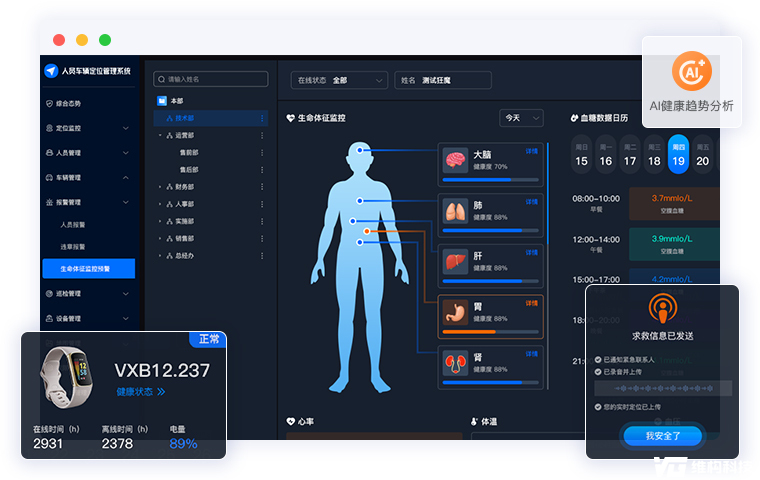 ·画面: 一名儿童在大型主题公园与家长走散。家长通过APP一键上报,管理后台立即精确定位儿童手环的位置,并通知附近的工作人员前往看护和联系家长。同时,如有游客在偏僻区域突发疾病并求救,系统能快速定位,并调度最近的救援人员和观光车前往处置。
